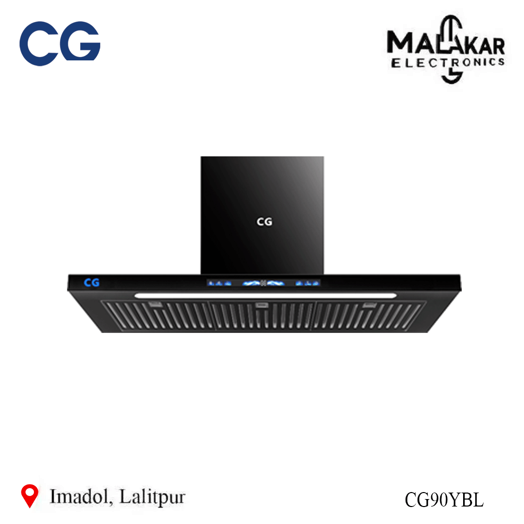 CG 90cm Flat Kitchen Chimney CG90YBL is a powerful and stylish kitchen solution designed to keep your cooking space clean and smoke-free. With its 90cm wide design and modern finish, it fits perfectly in contemporary Nepal kitchens.
