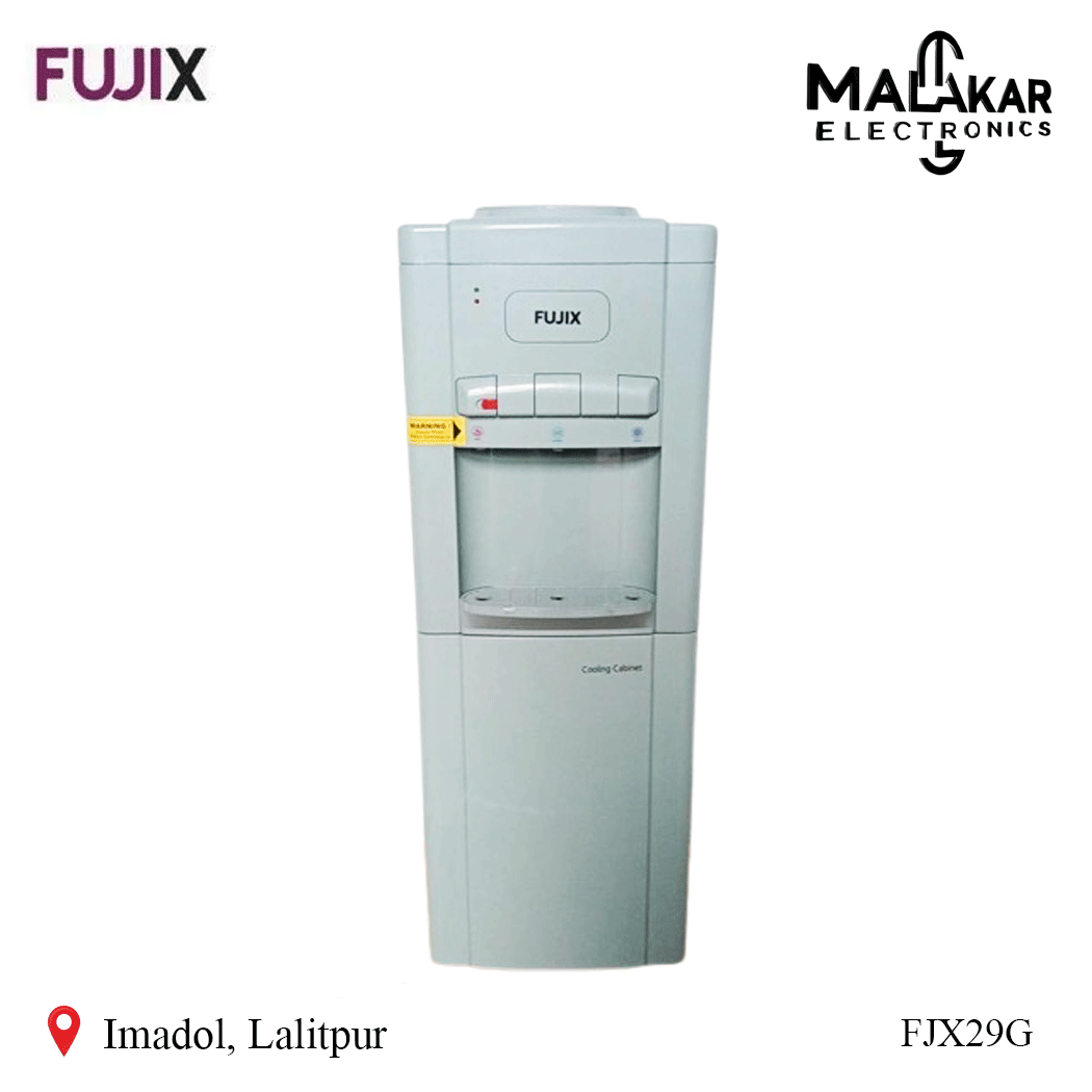 Fujix Water Dispenser with 20L Refrigerator FJX29G features advanced high-efficiency compressor cooling and ice cooling technology for fast and effective cooling performance. It comes with three temperature selections—hot, normal, and cold—along with a built-in 20L mini refrigerator and child lock safety feature, making it a reliable and user-friendly solution for daily hydration needs.