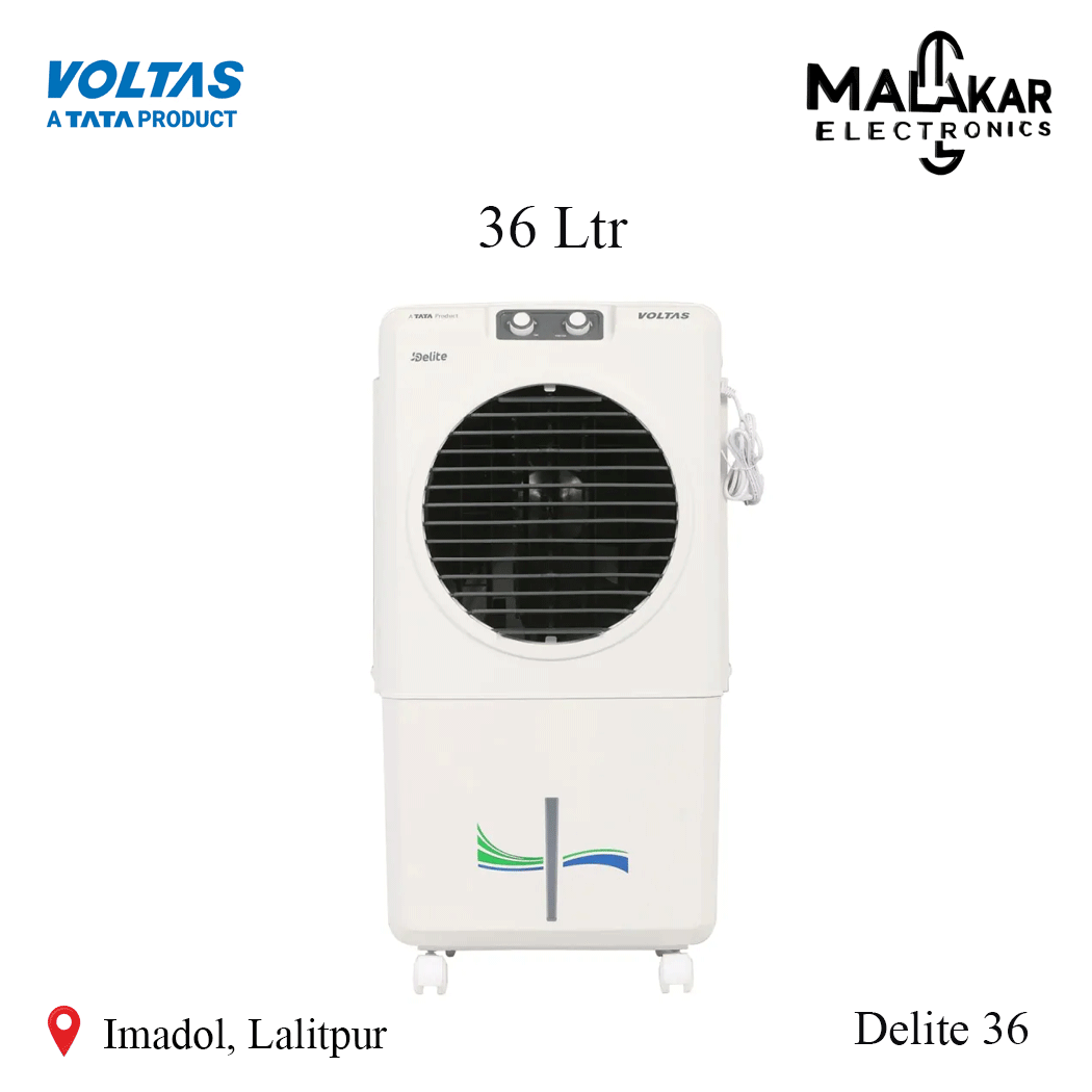 Voltas 36Ltrs Desert Air Cooler DELITE 36 is an efficient and portable solution to beat the summer heat. With a 36-liter water tank and honeycomb cooling pads, it provides long-lasting and uniform cooling for medium-sized rooms. Its turbo air feature ensures fast cooling while generating minimal noise for a peaceful environment.